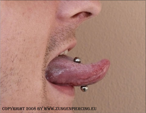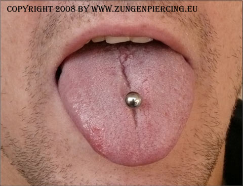 Zungenpiercing: dieses Piercing ist das wohl am weiten verbreitetste noch vor dem Bauchnabelpiercing und erfreut sich immer noch zunehmender Beliebtheit. Das Zungenpiercing wird in der Mitte der Zunge durchgestochen und der Piercer muss darauf achten, dabei das Lippenbändchen nicht zu verletzen. Die Angst, bei diesem Vorgang womöglich die Geschmackssinne zu verlieren oder zu beeinträchtigen ist unbegründet, da die Geschmacksnerven in der linken und rechten Zungenseite liegen. Nach dem piercen kann die Zunge stark anschwellen oder bei einem schlecht gestochenen Zungenpiercing kann man zu lispeln anfangen. Das ist aber von Person zu Person verschieden. Dieses Piercing ist eigentlich nicht so schmerzhaft, wie es aussieht. Die Abheilzeit liegt bei ca. 2 Wochen - 4 Wochen. Auf Säurehaltige Lebensmittel wie Fruchtsäfte und Milchprodukte ist in dieser Zeit zu verzichten. Auch auf Alkohol und Nikotin ist, wenn möglich zu verzichten. Nach der Abheilzeit und wenn die Anschwellung der Zunge nachlässt, kann ein kürzeres Piercing eingesetzt werden. Auch sollte in dieser Zeit kein Oral Sex betrieben werden, da Körperflüssigkeiten den Wundkanal entzünden könnten. Als Piercingschmuck kommt der klassische Barbell ( Kugelhantel ) zum Einsatz. Die Produktvielfalt ist riesig.
